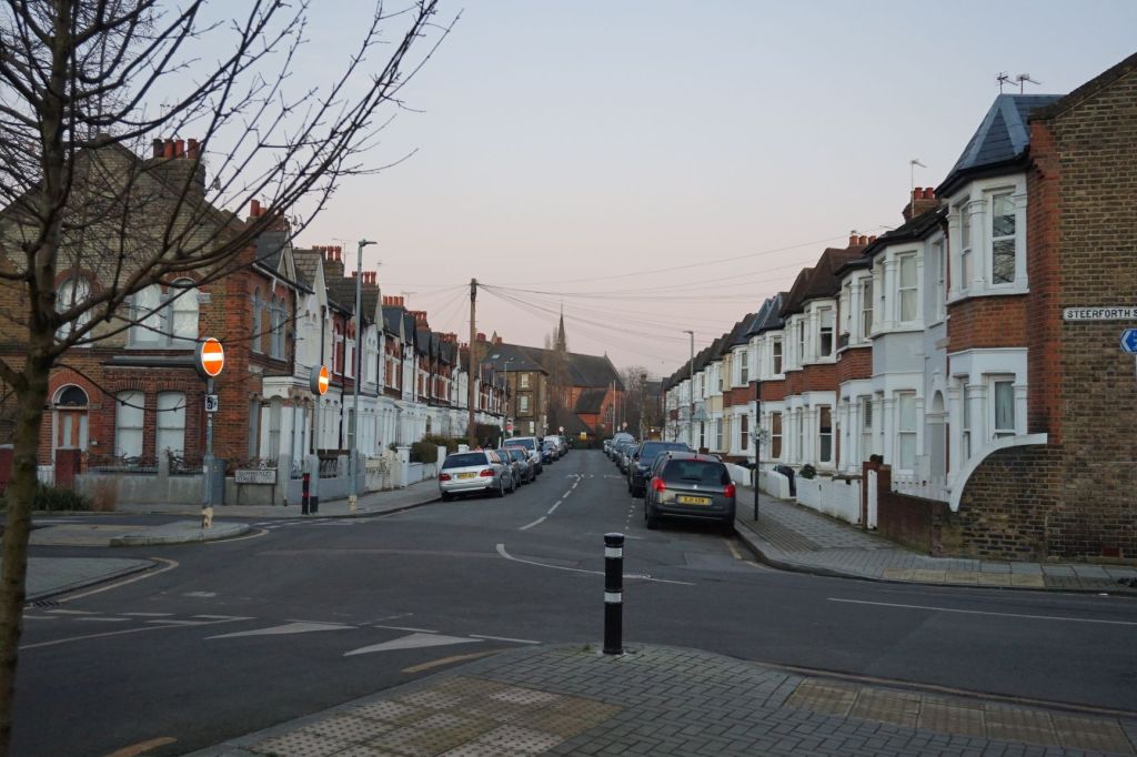 On Sunday I went for a long walk from Colliers Wood up through Tooting and back, mostly on side streets. A walk like that drives home just how pervasive terrace housing is in London, mile after mile of streets like the block at right, mostly 2 stories in this area. Now all converted to gas heating, but you can count the 4-6 chimney pots on each one, once all venting coal smoke. We can be grateful that lung damage from that kind of pollution is now a thing of the past, here in London at least (though that CO2 still endures in the atmosphere). At one point I was walking along, the traffic noise so muted I could hear my footsteps clearly and a songbird, and I heard from an open window Miles Davis’s “All Blues” . I stopped and listened for a couple of minutes, to Miles, Cannonball, John, Bill, and Paul playing those sweet, vaguely melancholic notes. It seemed the perfect soundtrack for the moment, and I listened to the entire Kind of Blue album when I got home, one of the top 5 LPs of all time. (An act that produced its own puff of carbon, alas.) I also walked by St. George’s Hospital, one of the biggest in metro London and the destination of most of the ambulances we now hear constantly. Like every hospital in a region where the wave of infections has yet to crest, the staff there is bracing for the terrible triage decisions that await.