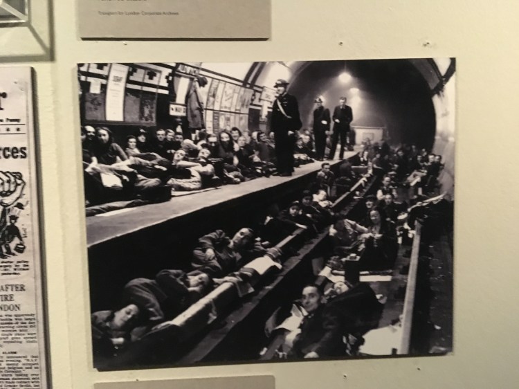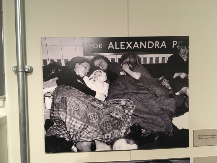 After lunch we headed back to the London Transportation Museum. Where else can you spend an hour practicing driving a Tube subway car into various stations? We also discovered an exhibit we missed the first time called “Hidden London.” It is about the uses of the Underground tunnels through history, as well as the stations that have closed. Did you know that during WWII they dug eight more tunnels underneath the Northern Line (the one we live on) that were used as bomb shelters, and an airplane factory? In 1944 up to 10,000 people slept in the underground every night. (And it’s easy to see why when you look at this site that has mapped every bomb to fall on London during the war.) There were 8,000 bunk beds, specially designed toilets, and linen stations for bedding. Today some of the abandoned tunnels house businesses such as a hydroponics lettuce-growing operation. Below are some photographs from that exhibit.