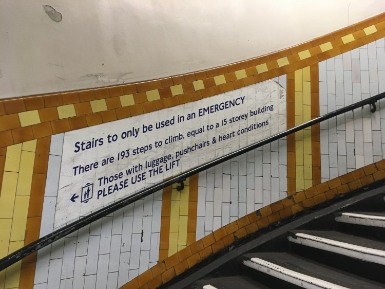 While we’re on the subject of the Underground, Covent Garden, the stop nearest the Museum of Transportation is so deep that is has 193 stairs going down to it. It also has elevators, but as you enter a recording plays, “This station has 193 stairs, the equivalent to a 15 story building. Please make sure that you are fit enough before attempting to use the stairs.” Elephant & Castle, another stop on our line, has 111 stairs! There are 75 stairs to get out of Colliers Wood, so I have vowed never to take the escalator up. You can get a good 20 flights of stairs in a day without even trying.