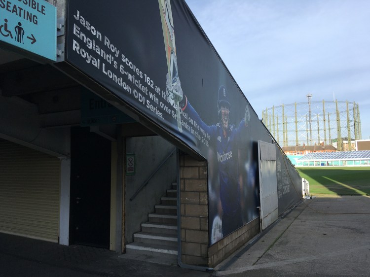 The Kia Oval. A cricket ground is typically called an oval, and this historic one is located on our underground line. We accidentally got on going the wrong direction after our marketing and had to switch directions here. We popped above ground to take a look around. Not too different from a historic baseball stadium, but much smaller.