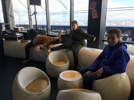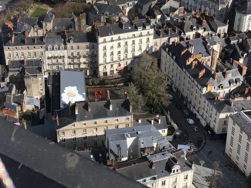 The Nest, a cafe at the top of the Tour de Nantes, which has 360 degree view of the city below. You can even see one cracked open on the rooftop of a building below.
