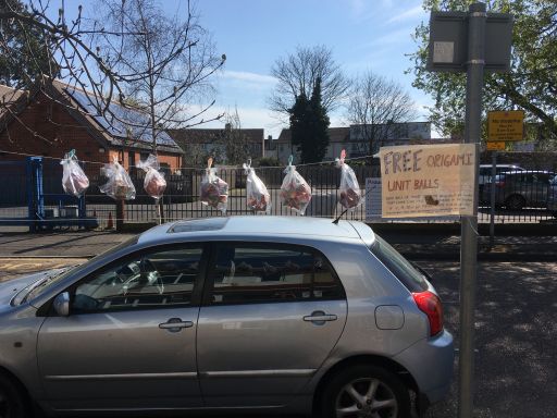 Our covidArt project. A neighbor in Ithaca proposed the idea that neighbors could create a spontaneous local art gallery on their porches during the period of confinement (a la the musical Porchfest in September). It inspired Samuel and I to create our own little way of sharing a smile with strangers in the front of our house in Colliers Wood. To date we’ve made 15 and given away 11 origami balls.
