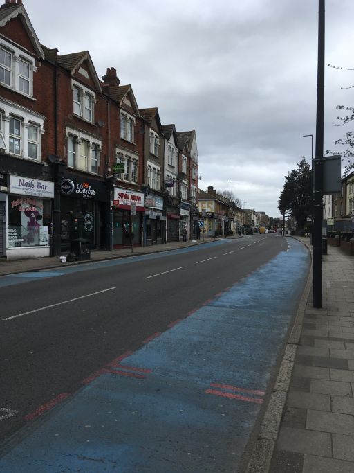 And reading the daily news does feel like looking into the abyss, especially as our country’s democratic institutions are being shredded, the climate crisis will only be worsened by a president who feels he can lift all EPA regulations in one swoop, and who uses the lives of his citizens as political pawns. But here we are at 15 South Gardens, Colliers Wood, and from here the world is as safe as it’s going to get. In fact a lot safer if you’re on a bike. The lack of cars has made biking for exercise a real possibility the past few days. Even our neighborhood, 6 miles from the city center, is usually jam packed with vehicles. This was Tooting High Street yesterday in the middle of Saturday afternoon, usually one of the worst times to drive.